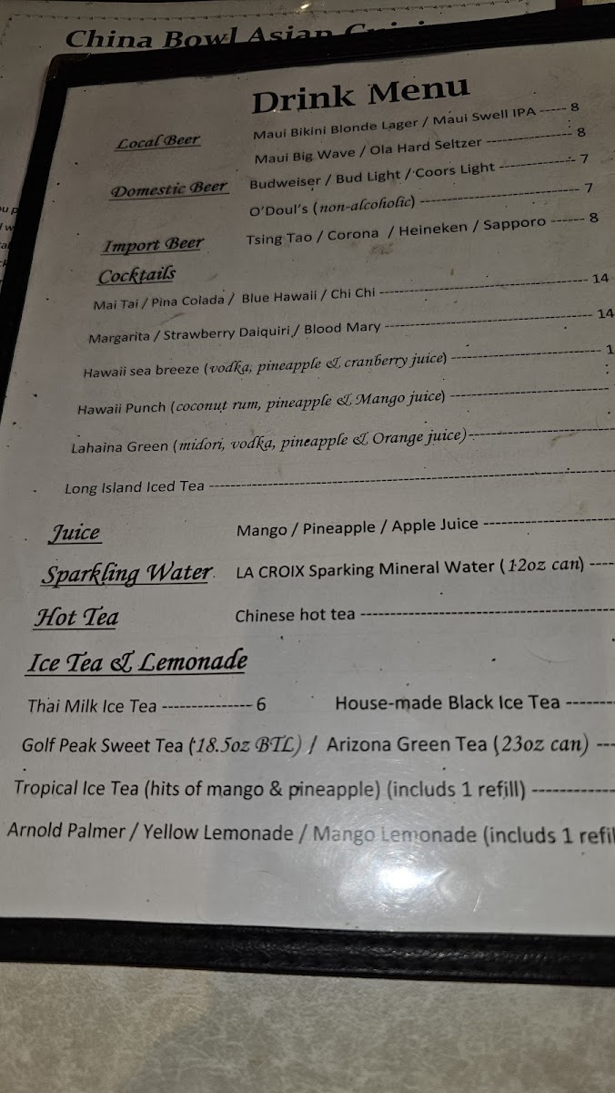 Welcome to China Bowl Asian Cuisine, your gateway to an authentic taste of Asian flavors. Nestled in Lahaina, Hawaii, this family-owned gem offers a relaxed ambiance—perfect for quick bites or leisurely meals. The menu dazzles with enticing options, from kids' favorites like Sesame Chicken and Teriyaki Chicken to seafood specialties such as Cashew Nuts Shrimp and Sweet & Sour Fish. Each dish is crafted with fresh ingredients and showcases vibrant flavors.